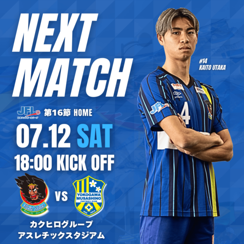 7月12日(土)に開催されます第27回日本フットボールリーグ第16節 vs 横河武蔵野FC の開催にあたり、ご来場いただく皆様への会場案内について、お知らせいたします。