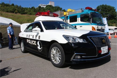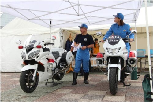 パトカーなどのはたらくくるま展示、制服を着用して写真撮影も可能!