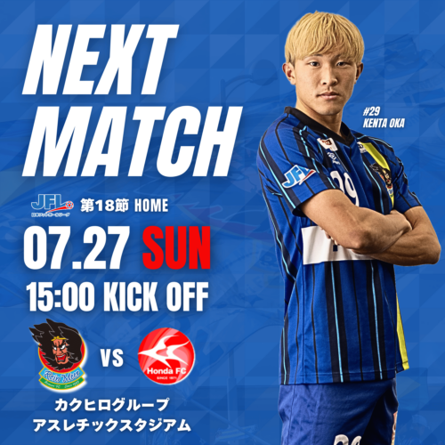 7月27日(日)に開催されます第27回日本フットボールリーグ第18節 vs Honda FC の開催にあたり、ご来場いただく皆様への会場案内について、お知らせいたします。
