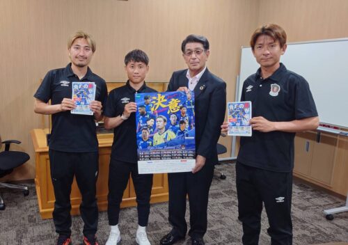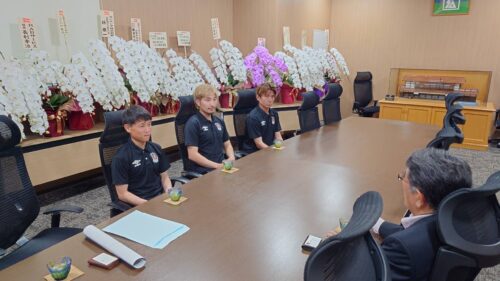 7月3日(木)、株式会社角弘様を、中原秀人選手、山口和樹選手、住永翔選手が表敬訪問いたしましたのでご報告いたします。