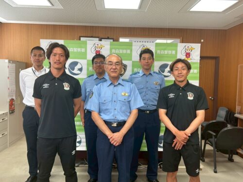 7月17日(木)、青森警察署を、遠藤元一選手、松本拓海選手が訪問いたしましたのでご報告いたします。