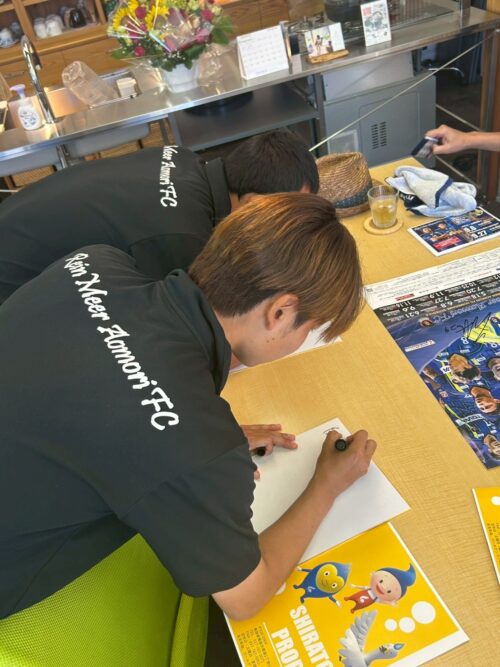 ポスターへサイン、試合のチラシをお渡しさせていただきました。
