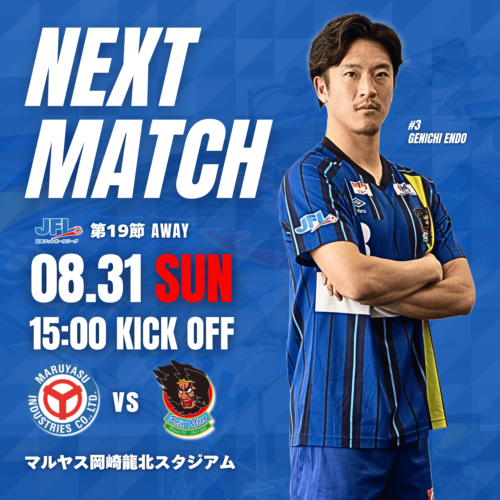 8月31日(日)第27回日本フットボールリーグ第19節 vs FCマルヤス岡崎 の開催情報について、お知らせいたします。