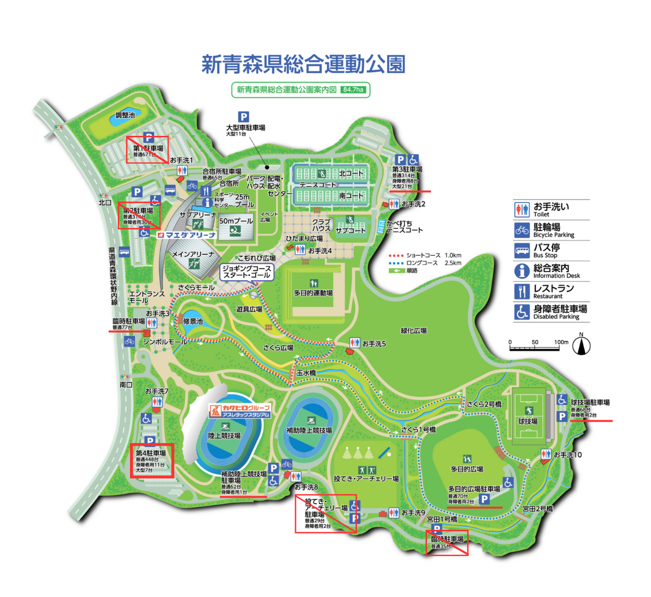 公園内の駐車場が混雑している場合、臨時駐車場のご利用もご検討ください。こちらは、”ラインメール青森 観戦者優先駐車場” となっております。