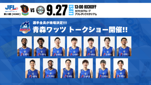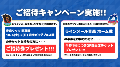 青森ワッツ開幕戦 10/4(土)-5(日)岩手ビッグブルズ戦のチケットを提示いただいた方に