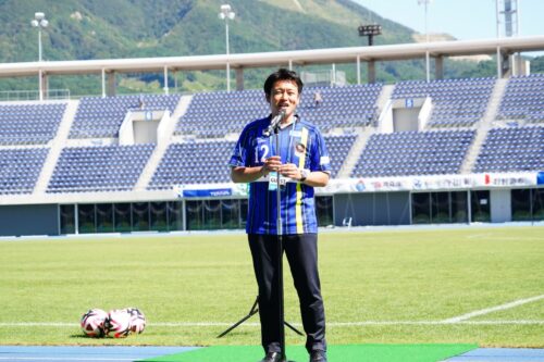 青森ワッツ選手の皆さんが、なんと全員でハーフタイムに出演!