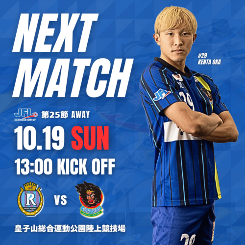 10月19日(日)第27回日本フットボールリーグ第25節 vs レイラック滋賀 の開催情報について、お知らせいたします。