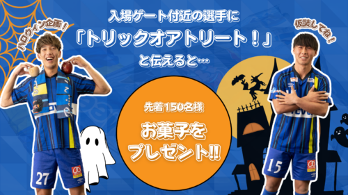 ゲート付近にいる選手たちへ「トリックオアトリート!」と声をかけると、お菓子をプレゼント!