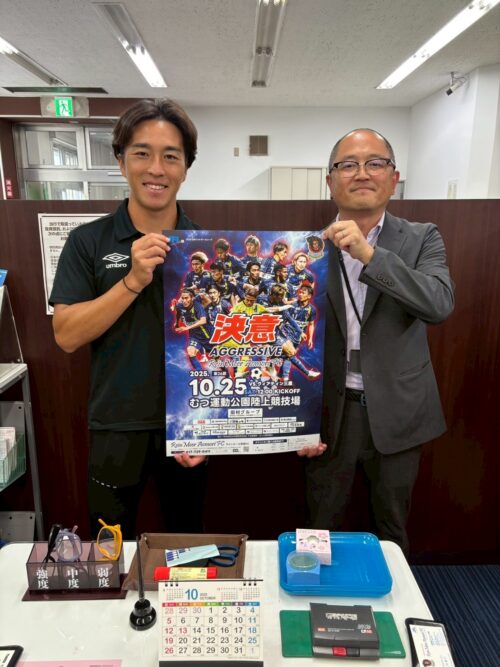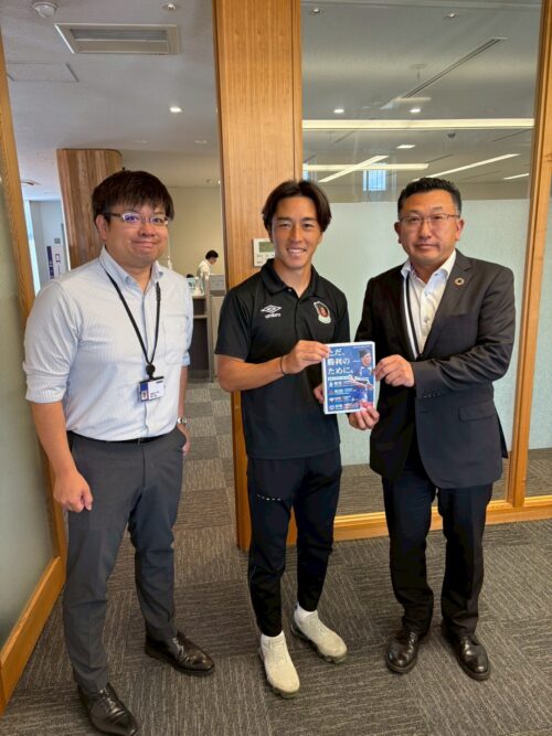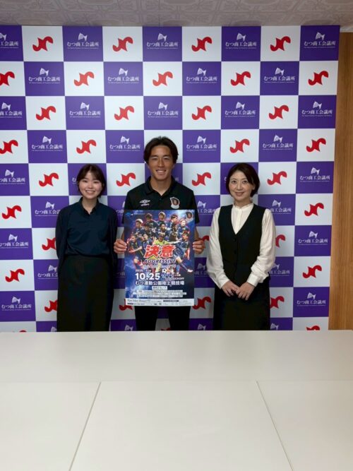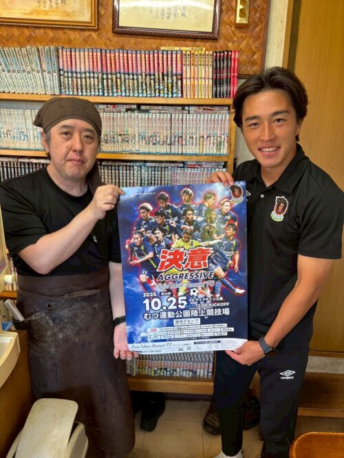 9/30(火)、髙木 輝之選手がご挨拶・試合への来場のお願いをするため、むつ市内の企業様を訪問いたしましたので、お知らせいたします。