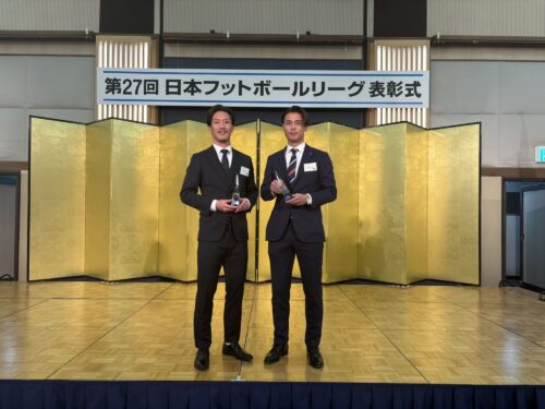 この度、12月4日(木)に開催されましたJFL表彰式におきまして、遠藤 元一選手、廣末 陸選手が第27回日本フットボールリーグ(JFL)ベストイレブンを受賞いたしましたので、お知らせいたします。