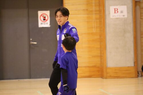 その後は、パス練習やシュート練習で選手たちからアドバイスをしたり、