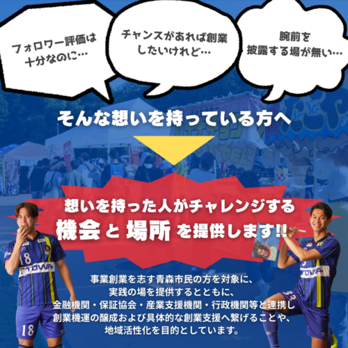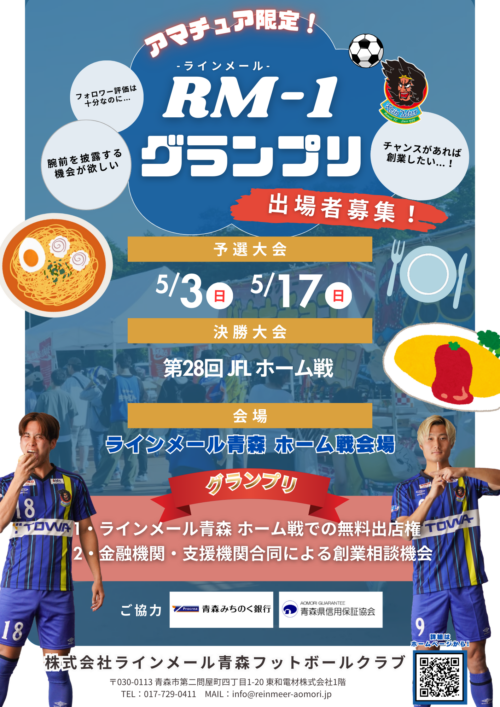 『2026 RM-1グランプリ』は、事業創業を志す青森市民の方を対象に、実践の場を提供するとともに、金融機関・保証協会・産業支援機関・行政機関等と連携し創業機運の醸成および具体的な創業支援へ繋げることや、地域活性化を目的としています。
