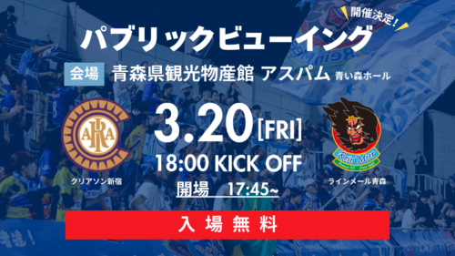 3月20日(金)2026 JFL CUP 第1節 [AWAY] クリアソン新宿 戦 パブリックビューイングの開催が決定いたしましたので、お知らせいたします。