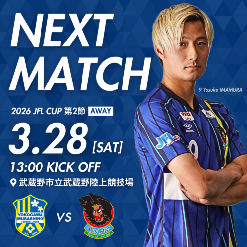 3月28日(土)2026 JFL CUP 第2節 vs 横河武蔵野FC の開催情報について、お知らせいたします。