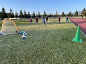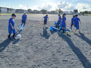 - サッカーのテクニック(パス、コントロール、シュート、キック)を学びます。