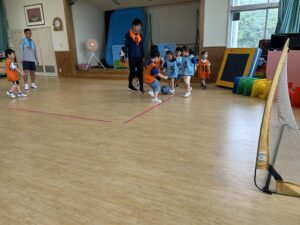 - 自分の体をうまく扱えるように走る、飛ぶ、回る、転がるなど様々な動作をトレーニングに取り入れていきます。